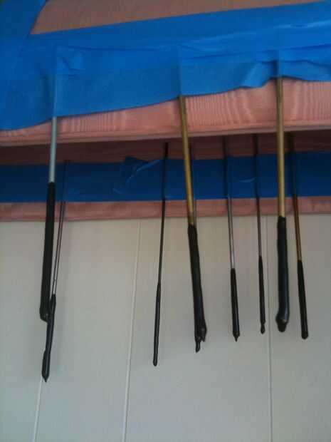 Definitivamente hay un montón de maneras de colgar estas. Lo más importante es que no hagas es un lugar que permite el baño plast a gotear. No goteará mucho, pero lo suficiente como para arruinar su alfombra. También es importante, son seguras porque si caen se arruinara la capa. Seguir la dirección en su poder para cuánto tiempo el plasti dip necesita configurar (dejar que la cura de un día).