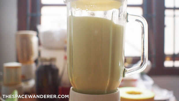 4 sencillos pasos para disfrutar de su explosión deliciosa y cremosa de sabor tropical* Este licuado es gluten, soja y productos lácteosPaso 1: Recolectar ingredientes -8 onzas leche de coco almendra-1 plátano pequeño-1 cucharada mantequilla de maní-