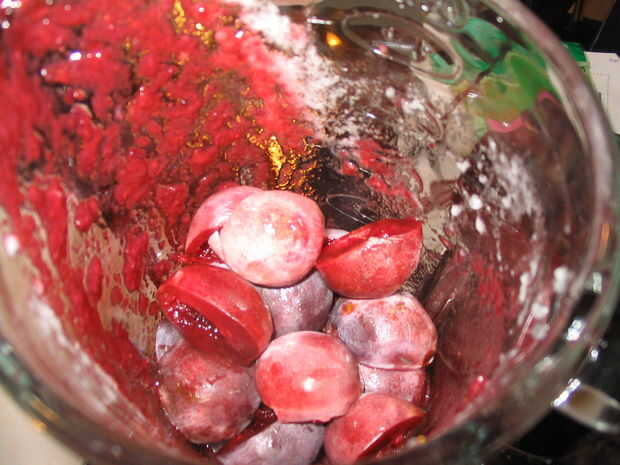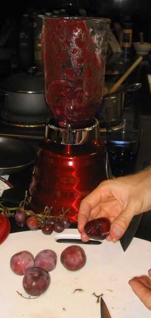 Corte encima de un montón de pequeñas ciruelas y ponerlas en una licuadora. Asegúrese de quitar todos los hoyos.