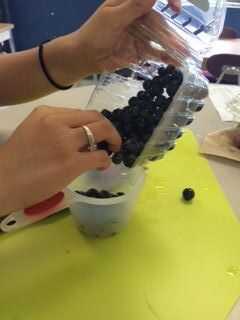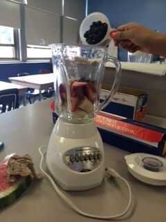 Paso 1: materiales De leche si lo desea, zumo de arándanos, Sorbe, naranja, cualquier otra fruta que desee.Paso 2: Poner fruta en la licuadoraPaso 3: Ponga jugo en licuadoraPaso 4: Ponga sorbe en licuadoraPaso 5: MezclaPaso 6: Poner la leche enPaso 7