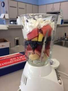 Paso 1: materiales De leche si lo desea, zumo de arándanos, Sorbe, naranja, cualquier otra fruta que desee.Paso 2: Poner fruta en la licuadoraPaso 3: Ponga jugo en licuadoraPaso 4: Ponga sorbe en licuadoraPaso 5: MezclaPaso 6: Poner la leche enPaso 7