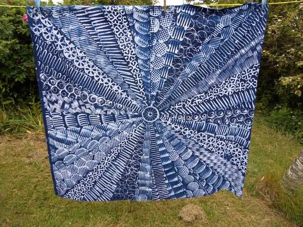 Enjuague y cuelgue para secar. Los blancos del diseño deben verse mucho más brillantes ahora se quita la cera.