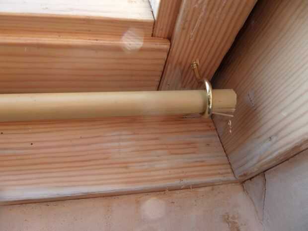 Espero que este muy simple y plan para los bordes de la tela de la máquina y luego hacer una costura superior e inferior de una caña de bambú a través y fijar por medio de la simple "C" en forma de fijadores de los tornillos que los polos de apoyo y facilitan el poner arriba o abajo. Ningún rodillo mecanismos aquí, sólo un manual de fijación de tipo de persiana.