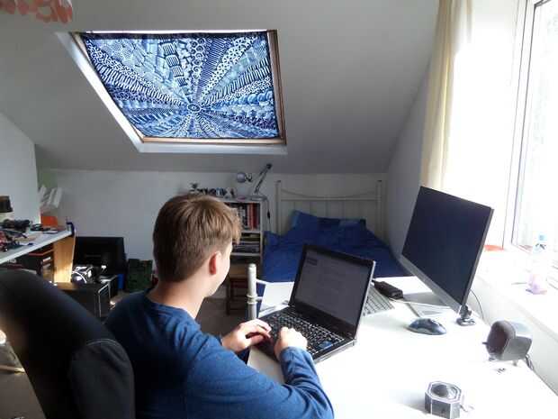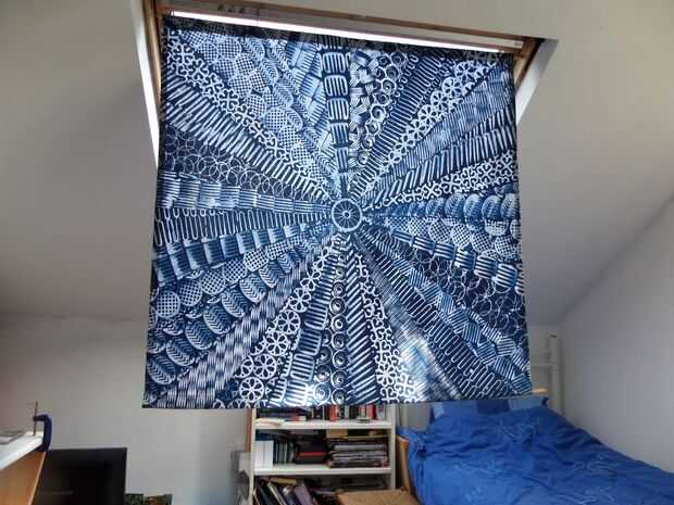 Hice esto para el cuarto de mi hijo como le de tan brillante en el verano, creo que él reconoce una fresca sombra, pero no está seguro acerca de mí haciendo un juego edredón y cojines...