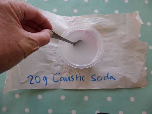 3 disolver 20g de Soda cáustica en agua fría, revolver y añadir para IVA.