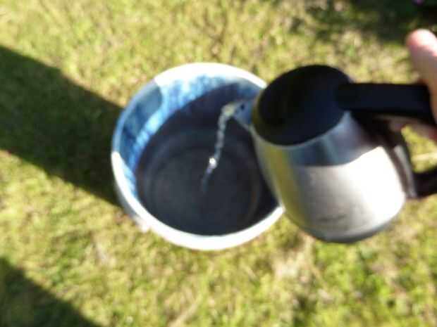 1 consigue un balde con tapa y rellenar con 2 gal de agua hirviendo agregar 300 g de sal.