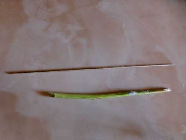 - Un palo de hoja de coco en lugar de la tjantling y un tallo tierno de cepillado en la cera