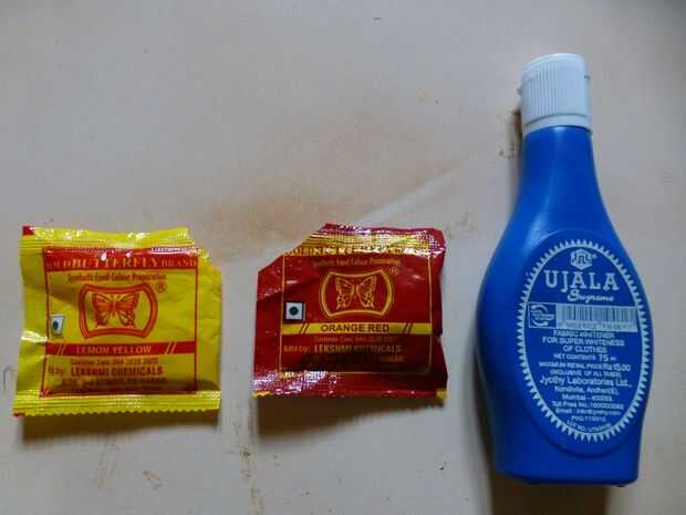 - Amarillo y rojo anaranjado alimento blanqueador colores y tela para el baño de tinte azul