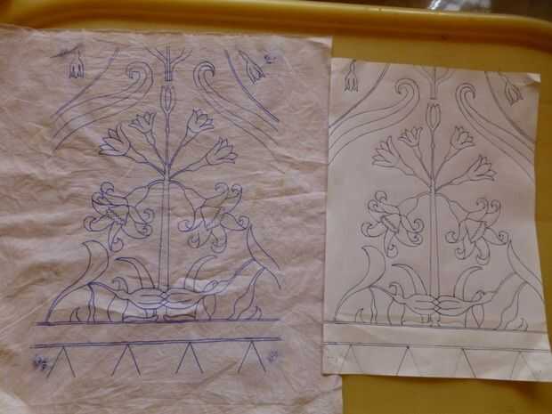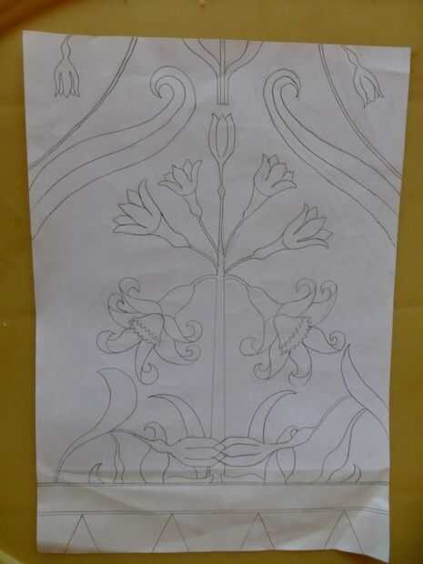 Aquí, yo he dibujado el diseño Batik en un papel normal y lo transfirió a la tela un papel. Usted puede dibujar también directamente sobre la tela con lápiz, carbón o cualquier otro material de dibujo.