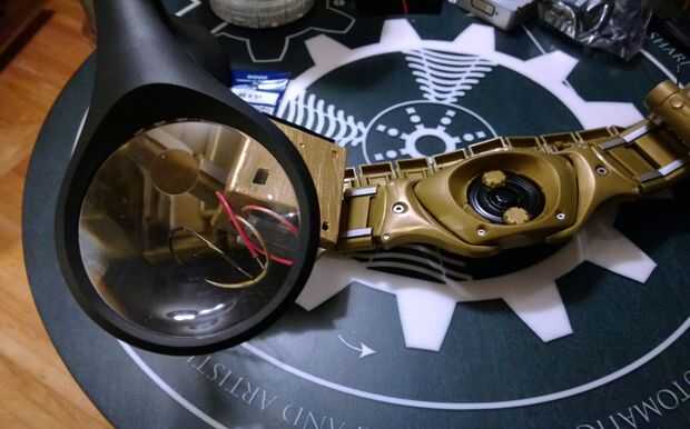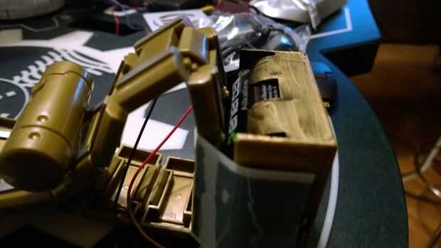 Pintura y velcro el portapilas a la correa, soldar todo por lo que hay de 6 voltios en los pines correctos del cable USB y haga caras loco como conecto por primera vez.