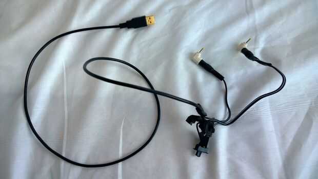 Solución: dividir el circuito en dos cuerdas separadas de la USB y conectado el embedidos en una pequeña batería USB cargador de teléfono, escondida discretamente en mi guante. Con alimentación separada, todo funcionó sin problemas.