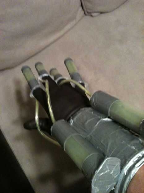 lo que necesita es simple, unos tubos de plástico de Home Depot, un guante, 4 pinceles metálicos, adaptadores de manguera de agua 4, tornillos y anillos de tubo. Utilizar lo que adapta a su brazo y la mano mejor. Mi guante cuesta unos 20 dólares para