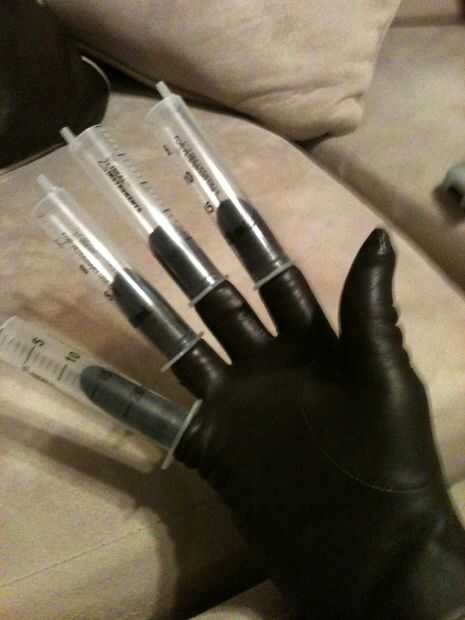 este es el disfraz de halloween que hice este año. Es el Espantapájaros del excelente videojuego Batman: Arkham Asylum. Él tiene una mano de jeringa que utiliza para inyectar a sus víctimas con la toxina del miedo.