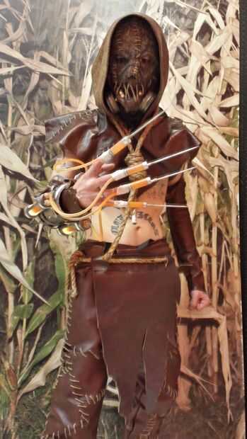 Así, actualmente estoy trabajando en dos espantapájaros. Y ya he hecho uno. Sí que tengo tres versiones diferentes y la planificación de más. Mi primero fue el asilo de Arkham, uno, más vendrá. Pero por ahora, espantapájaros de Arkham caballero.Así,