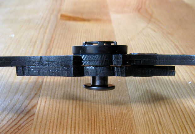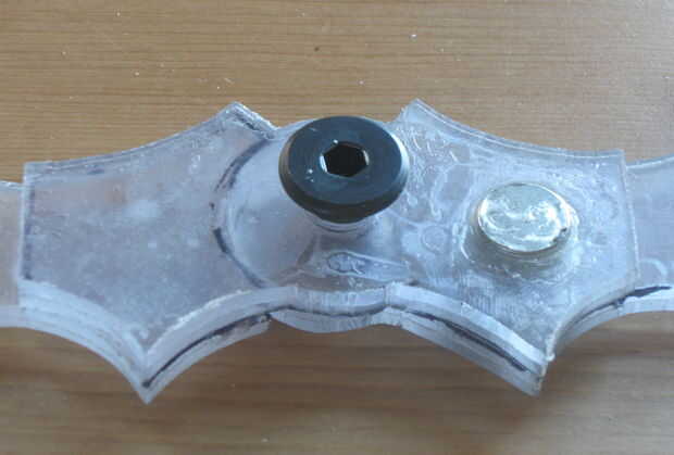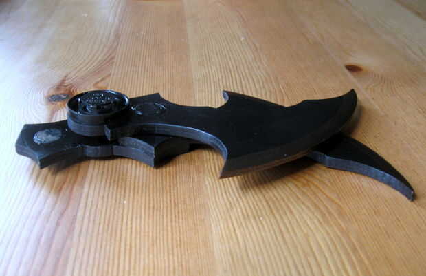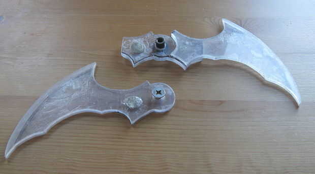 Ahora puede montar el batarang. Pegué un pequeño widget de plástico sobre la cabeza de tornillo de máquina para cubrirlo. Usted puede aprovechar el batarang aparte sacando el conector de muebles de la parte posterior. Por esta razón desea tornillo de máquina a ser bastante bien en su lugar.