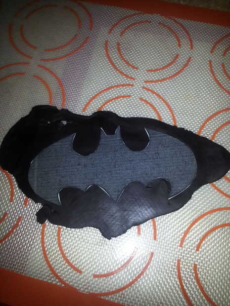 Imprimir algunos símbolos de batman en el papel de la impresora y cortar uno que se ajuste bien a la parte superior de la torta.