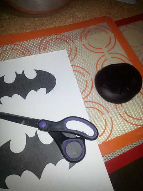 Estirar algunos del negro decoración de masa sobre un tapete de silicona.