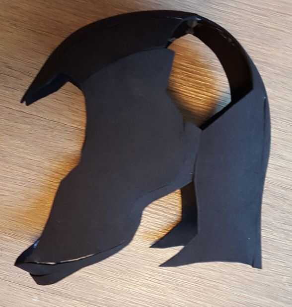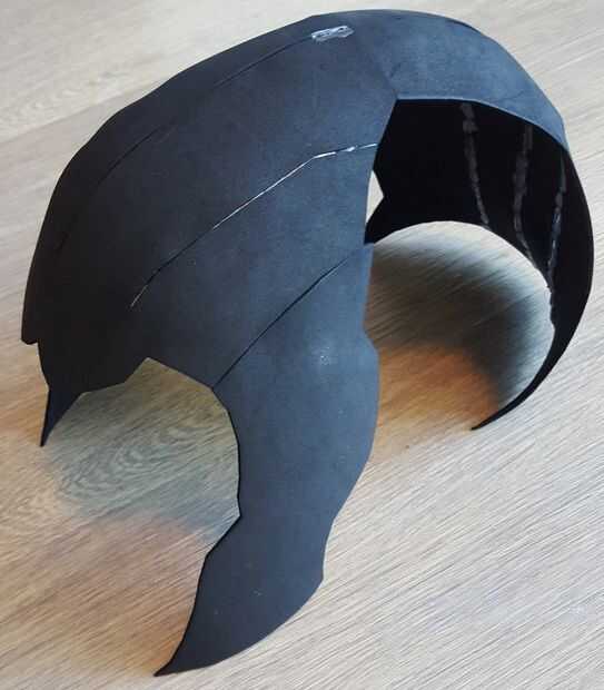 Encontrar las costuras que coincidan con los lados de la parte superior de la cabeza. Fijamos en la imagen y las piezas, como las piezas deben encajar bastante exactamente aquí. Pegamento de un lado para el casco y luego trabajar alrededor al otro. En la primera imagen se puede ver que originalmente experimentado con separado del lado / de la barbilla, pero más tarde decidió crear una pieza continua. Mucho más fácil de pegar.