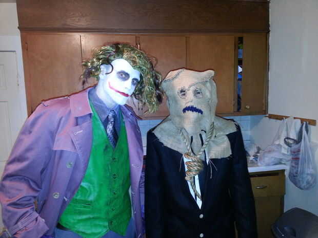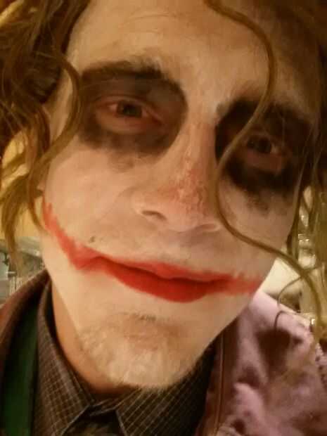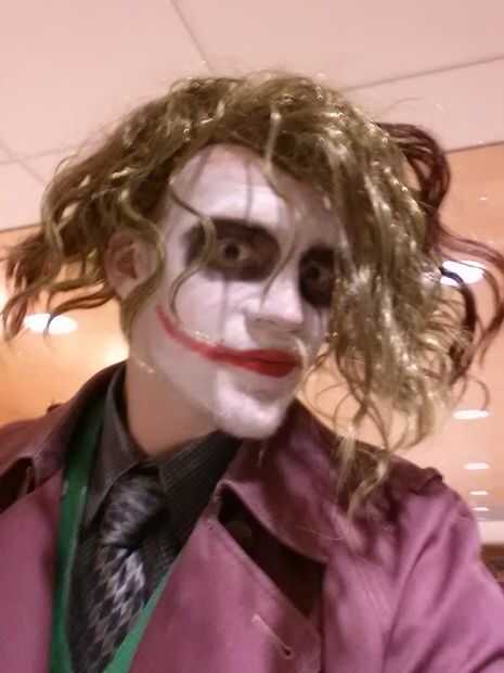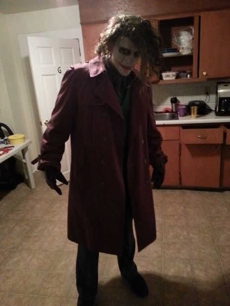 aqui tengo un traje casi totalmente casero del joker. Compré la mayoría de mis artículos de buena voluntad o la tienda de segunda mano y armar el traje de la pieza por pieza en cuestión de los últimos 2 meses. Teñido la gabardina y pantalón de traje púrpura tinte que había comprado en WalMart. tenía el chaleco pintado hoja verde mediante la adición de una mezcla acuosa a pintura acrílica así la pintura se más flexible y más fácil de sacar para el cuero. La camisa no es la camisa exacta porque estaba en un presupuesto así que me conformé con una camisa estampada oscurezca muy barata de buena voluntad y la corbata que ya tenía así que fueron juntos con el resto del traje. Los zapatos que obtuve en buena voluntad casi idéntico a los que en el libro mayor del brezo había usado en la película. En cuanto al maquillaje, guantes y la peluca que tenía para ésos en línea porque, en mi opinión son las piezas más importantes, quería que éstos al estar tan cerca como sea posible.