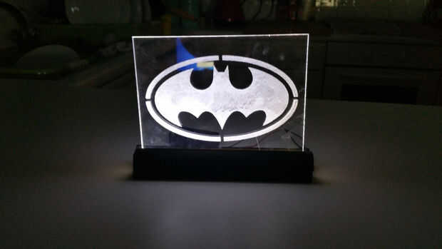 Mi hija es una fan de batman y estaba buscando algo diferente, ver algo en YouTube que me dio la idea de tener retroiluminación no tanto, pero utilizando la refracción de la luz, destacando el logo de Batman...