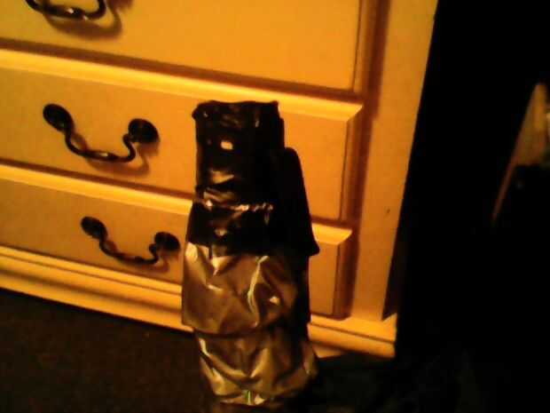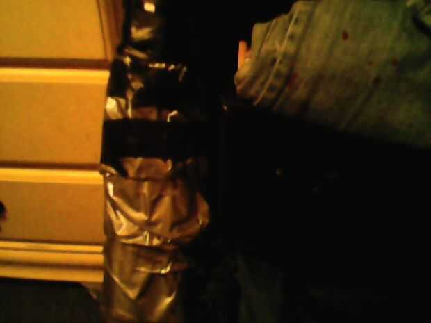 Así que lo que hice fue que tape la parte superior del conducto y fondo entonces ponga cinta a través de un medio centímetro dos veces luego hacer lo mismo en la parte inferior y luego en 1 en medio centímetro y parte superior e inferior luego conducto cinta todos si usted skipa punto acaba de poner más cinta en él