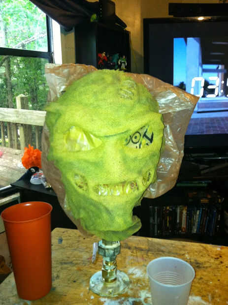 En este ejemplo utilicé la guita para la boca y la Lycra para los ojos (ha ver through-ish) y las vísceras de la boca.