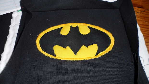 Debido a los detalles del símbolo del murciélago, la sujeté con una puntada zigzag espaciada y estrecha.