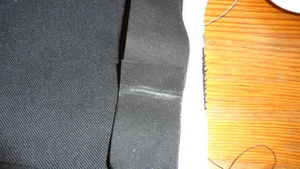 Haga una marca donde deben unirse los enlaces. Hilvanar y compruebe. Coser la costura. Recorte la costura y plancharlos abiertos. Coser el lado pasado.