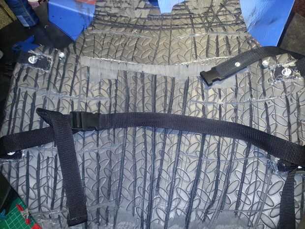 Actualizar - habiendo decidido reforzar todo esto, ya he vuelto y utiliza arandelas y remaches en estas áreas de correas para hacerlos permanecer en el lugar.