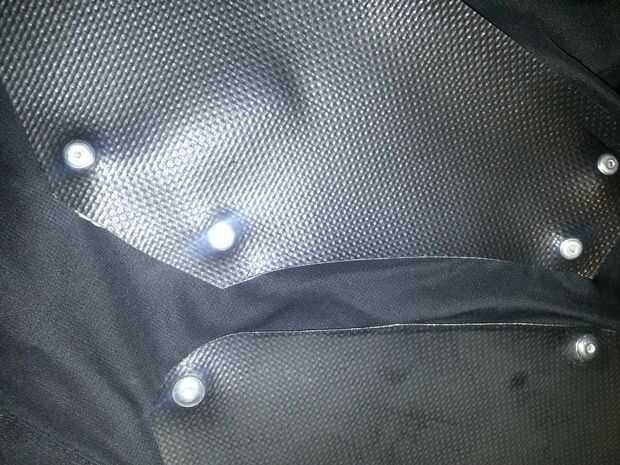 Me enteré, después algunos jugando que usando la espuma de EVA de 10mm en las piernas sin ninguna correas es difícil de mantener. Traté de usar "rápido en de" al principio pero no funciona, mantiene saliendo.