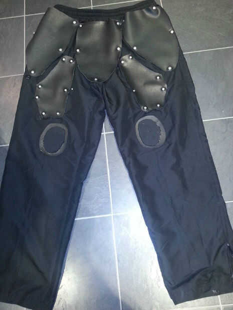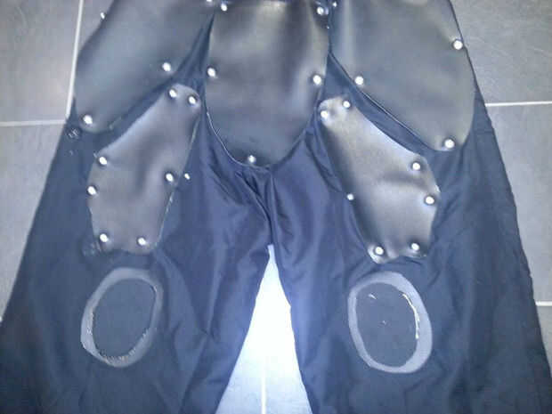 Los muslos eran de una sola pieza y luego la zona de la ingle (que estaba bien acolchada... ahhmmm) y las tapas de la rodilla con extra espuma pegada en la parte superior. Sea creativo con esto pero traté de mantener cerca de la armadura del caballero oscuro.