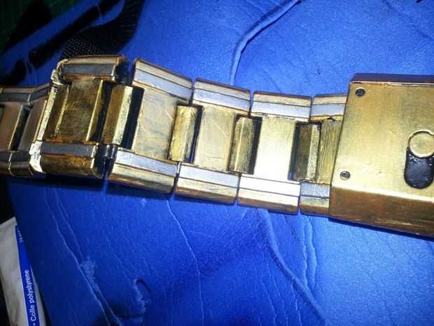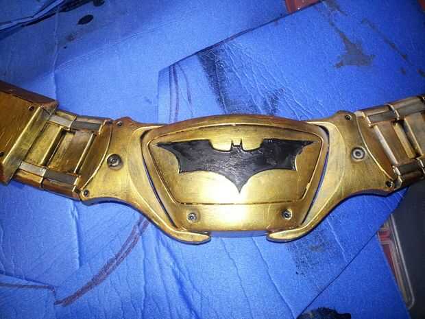 El cinturón de utilidad del caballero oscuro es el menos estúpido en busca de todos ellos. Sin embargo el trabajo de pintura es horrible y parece de plástico. Tienes que tomar tu pintura oro y capa de base, negro brillante el logo del murciélago en el centro y dejar para secar.