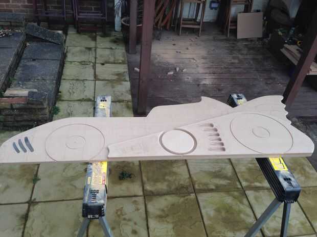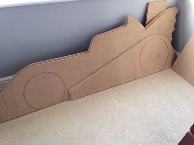 Entonces decidí que en lugar de tener sólo un lado plano de la cama que iba a usar otro pedazo de MDF para llevar una vida un poco más a la rueda trasera arcos. Así que usando la misma técnica de transferir el diseño que cortar otra pieza para los arcos de rueda.