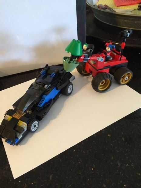 En este sistema, el Joker es perseguir a Batman en camión de martillo de Harley Quinn. Use cinturón de utilidad de Batman para el Batmobile en la acción.