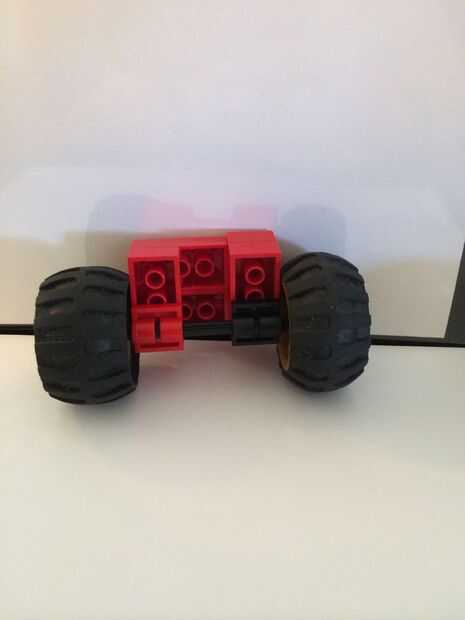 Tomar 5 piezas de 2 x 4 rojo. Poner 2 piezas paralelas entre sí con el espacio para otro 2 x 4 en el medio. Coloque otra pieza de 2 x 4 en la parte superior uno de los otros 2 x 4. Tomar las 2 restantes 2 x 4 y lugar ellos encima de la perpendicular de segundo 2 x 4, creando un "puente" que no está conectado. Añadir lanzadores de misiles de 2 x 2. Agregue un trozo de árbol negro entre, conectando las dos secciones. Añadir las ruedas.