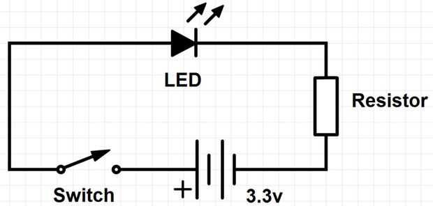 Circuito electrónico es muy simple. En el circuito de led, batería y resistencia están conectadas en serie. Se utiliza un interruptor para encender o apagar el led.