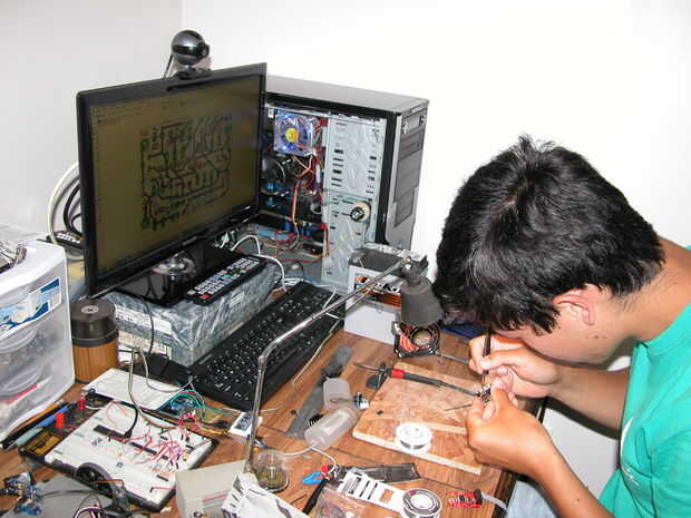 Utilice un soldador de punta fina para soldar los componentes en la placa. Tenga cuidado de no dañar los componentes por sobrecalentamiento con un soldador. Haga clic en las fotos de arriba para ver las notas sobre el proceso.