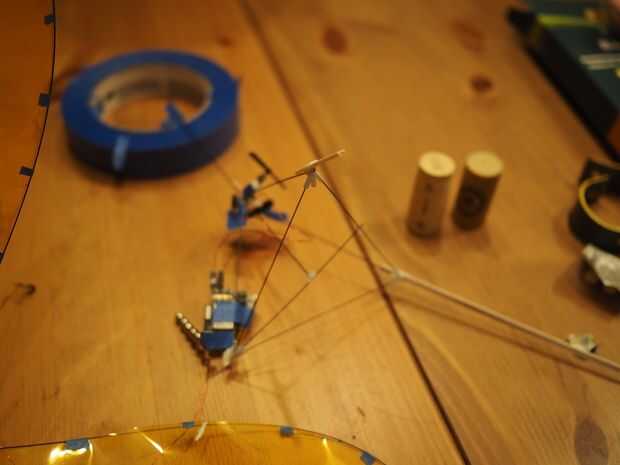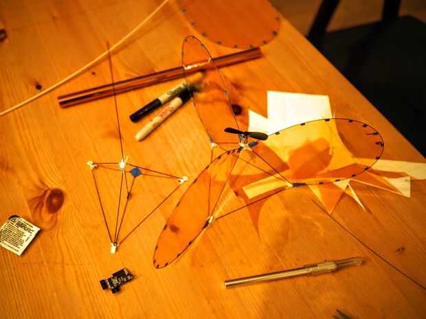 3D que imprimen los conectores y montajes de motor para nuestros fuselajes (archivos muy pronto!), pero como se puede ver, la forma de la armadura de avión es muy sencilla. Básicamente hay dos 3"- 4" tetraedros, cada uno en la nariz y la cola, con tres mástiles se conectan y asegurar el balón en el medio. Por lo tanto, no necesita conectores impreso en 3D para construir un dirigible: nuestros prototipos iniciales fueron literalmente trozos de varillas de fibra de carbono grabados juntos en las mismas estructuras que ves arriba.