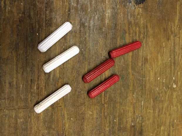 Ganchos de espiga de pintura. Pinté las 72 clavijas blanco rojo y 146, a dividirse uniformemente entre los jugadores (1 caja de 72 rojo, dos cajas de blanco).