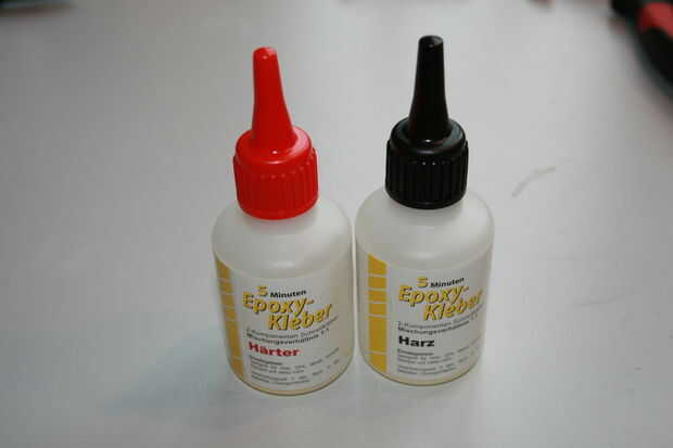 Cae kein Epoxydharz zur Verfügung steht kann man es auch mit Heißkleber trate. Die mechanische Stabilität ist aber geringer.