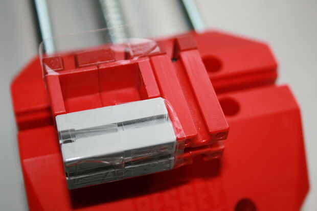 Die offene Seite und die Kanten decken wir mit Tesa ab.