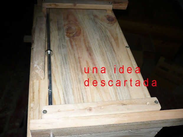 Otra idea eliminada, el enganche con el pupitre. Habia pensado en un sistema de arrastre, para el baul se pudiera retirar y acercar al pupitre, pero no de separalo del eléctrico Al final, con buen criterio, mi esposa (la jefa de investigación y desarrollo, I + D) me explico era mejor el baul tubiera una "vida mas libre", para poder usarlo en otro sitio o para otras cosas.