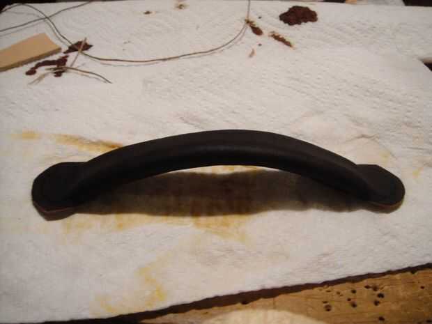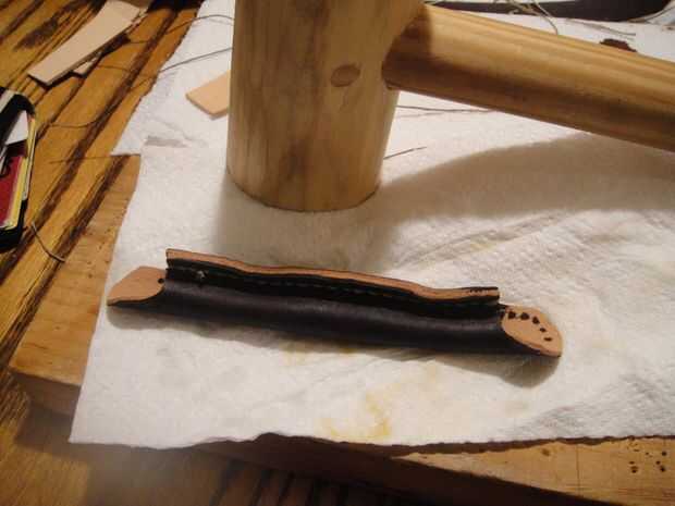 Ahora debe tener un tubo de cuero, que tendrá que ser aplanado. Para ello, necesitará haga correr agua tibia sobre el mango entero para que sea flexible, entonces resolver el estrés con tu mazo! una vez que el mango se aplana a tu gusto, preferiblemente con la costura en el centro de la parte inferior, no dude en forma más ergonómica y ponerlo a un lado para secar.