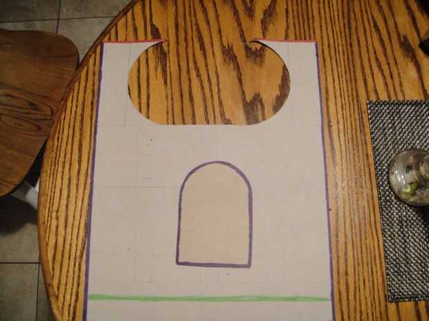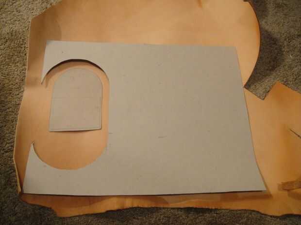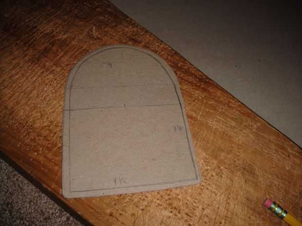 El método que estoy usando para unir estas partes se llama la puntada de silla de montar y requiere que usted para darle un poco de margen de costura. Con esto en mente, me había esbozado un patrón rápido sobre un trozo de cartón y se trasladó en un poco para acomodar mi puntadas. Fui por delante y también marcado hacia fuera de la circunferencia de la cara para que yo pude tamaño correctamente el cuerpo principal. En este caso la circunferencia de mi plantilla de lado, otra vez ajustado para la costura, era aproximadamente 18 1/2 pulgadas total.