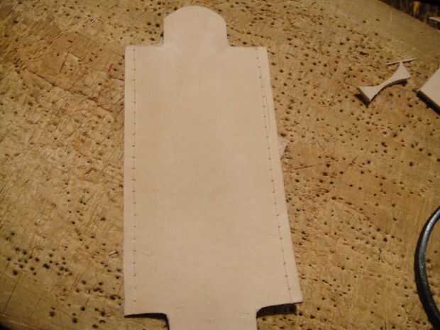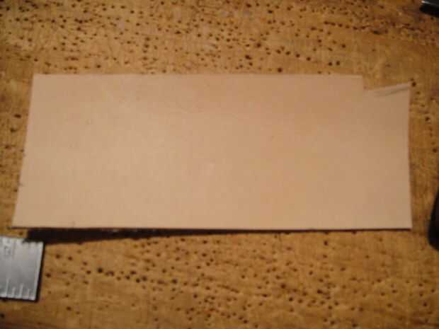 Solía rectángulo aproximadamente tres pulgadas de ancho y cinco pulgadas largo comienza a forma el mango, puesto que será cosido a sí mismo y enrollado me dará una manija completa de sobre y pulgada y media de ancho.