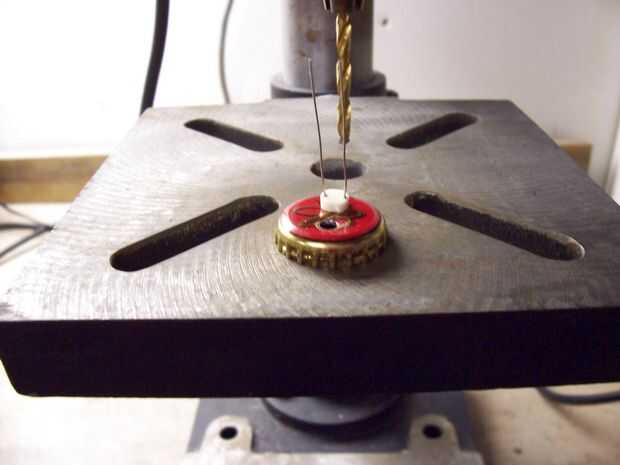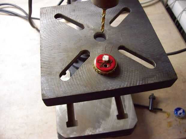 Hay dos agujeros que se necesitan en la tapa. Uno para la energía y una segunda para la célula fotoeléctrica. Puesto que la célula fotoeléctrica es gran simplemente había perforado dos agujeros de lado a lado.