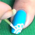 Ahora comenzando con un pincel fino y blanco pintura de uñas, hacer el principio del patrón con una línea curva en la esquina de la uña del dedo índice.