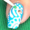 Embellecer el patrón en la uña del índice con gemas brillantes.