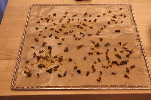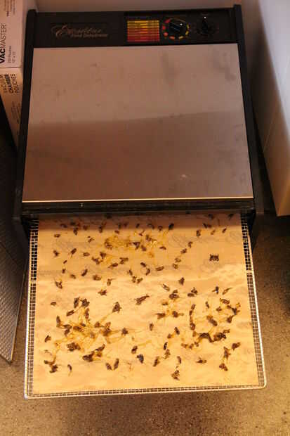 Ponerlos en el deshidratador hasta que la salsa no es húmeda, aproximadamente una hora.