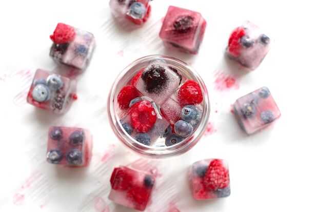 de hielo? Esto es incluso mejor...Paso 1: Reúna los ingredientes Necesita un vaso, agua y bayas congeladas.Paso 2: Añadir bayas Pour las bayas congeladas en el vaso (la cantidad varía con gusto).Paso 3: Añadir agua Llene el resto del vaso con agua co